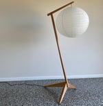 This handcrafted floor lamp is made from your choice of quality timber. Lamp has a solid timber base with a paper lantern and quality bulb and power cable included. Cable has an on/off switch.